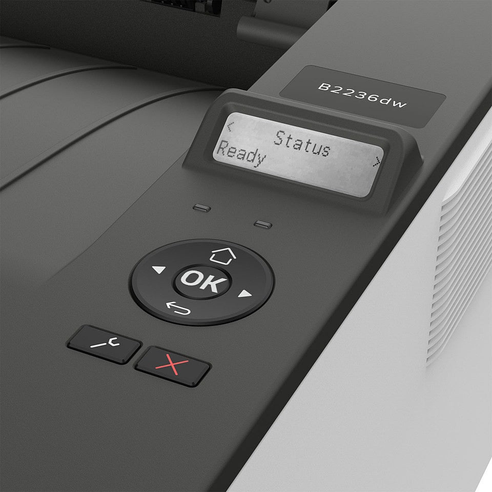 The Lexmark B2236dw is a compact A4 monochrome laser printer designed for small offices, home offices, and workgroups. It delivers up to 36 pages per minute (ppm) with 1200 × 1200 dpi resolution, combining speed, efficiency, and reliability in a small footprint. Featuring automatic duplex printing, USB 2.0, Ethernet, and wireless connectivity, this printer is ideal for users needing fast, cost-effective mono printing with flexible network options.